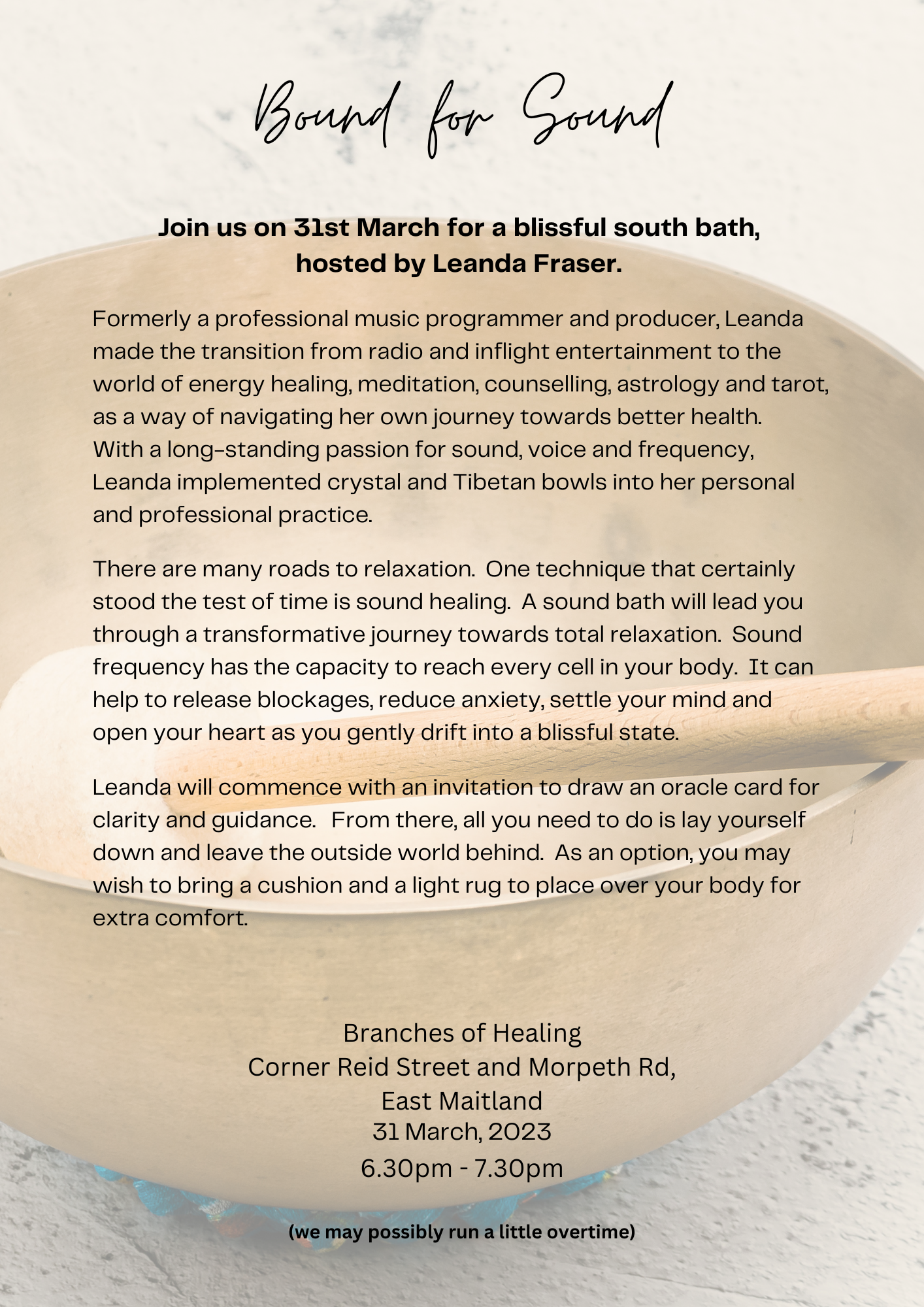 Join us on 31st March for a blissful south bath, hosted by Leanda Fraser, Blended with Lance's energy healing.
